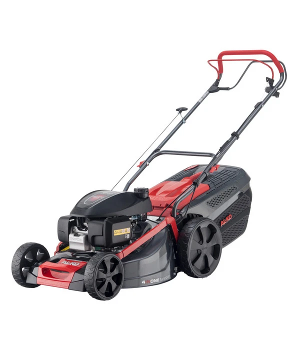 Haben Sie ein großes Grundstück oder größere Rasenflächen zu Hause? Dann kennen Sie bestimmt das Problem, dass die Handwerks- und Gartenarbeit nie aufhört und sich immer irgendwo etwas werkeln lässt. Der funktionale AL-KO Benzinrasenmäher mit erstklassiger Ausstattung unterstützt Sie beim Mähen, Fangen und Mulchen – so macht die Gartenarbeit richtig Spaß! Dank des kräfteschonenden 1-Gang-Hinterradantriebs, der XXL-Leichtlaufräder und des starken Motors kommen Sie auch auf großen Grünflächen und unebenen Stellen schnell voran.