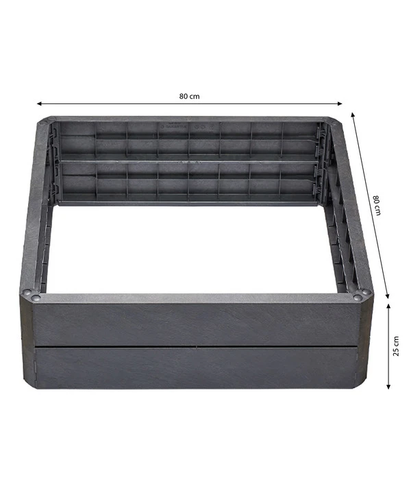 Um die Montage Ihres neuen Hochbeets müssen Sie sich keine Gedanken machen. Dank seines einfachen Stecksystems ist es sehr schnell zusammengebaut. Außerdem ermöglicht Ihnen dieses Design eine flexible Erhöhung des Beets ganz nach Ihren Wünschen. Überzeugen Sie sich selbst von seinen Vorteilen, indem Sie das Garantia Hochbeet-System Ergo Quadro Stone jetzt bestellen!