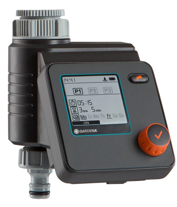 Bei dem GARDENA Bewässerungscomputer Select können Sie drei unterschiedliche Programme mit voneinander unabhängigen Zeitplänen zur Gartenbewässerung auswählen. Einstellbar sind Start, Dauer und die Wochentage, an denen die angeschlossenen Systeme arbeiten sollen. Der GARDENA Bewässerungscomputer Select wird direkt am Wasserhahn befestigt und überzeugt auch durch seine leichte Bedienung: Einfache Dreh- und Drückschalter zur Auswahl der Daten und zur Bestätigung machen die Bedienung für Sie zum Kinderspiel. Und dass das Display gut lesbar ist und alle Einstellungen auf einen Blick zeigt, versteht sich bei einem hochwertigen Produkt aus dem Hause GARDENA von selbst.