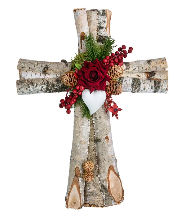 Sie wünschen sich für Allerheiligen, Allerseelen oder Totensonntag für das Grabgesteck eine klassische Form, die unaufgeregt ist und dennoch Ihre Verbundenheit ausdrückt? Das Grabgesteck Sören in Kreuzform vereint stil- und würdevoll Trauersymbole mit Zeichen für Liebe und Verbundenheit. In Birken-Optik gehalten, passt Sören sich jedem Grab oder Urnengrab wunderbar an und setzt dennoch einen Akzent. Die Mitte des Kreuzes ziert ein liebevoll gestaltetes kleines Keramikherz, das von rotem Beiwerk umgeben ist. Damit senden Sie an Ihre Verstorbenen und an alle, die das Gesteck betrachten, eine schöne Botschaft und drücken dezent Ihre Trauer und Sehnsucht nach den Verstorbenen aus.