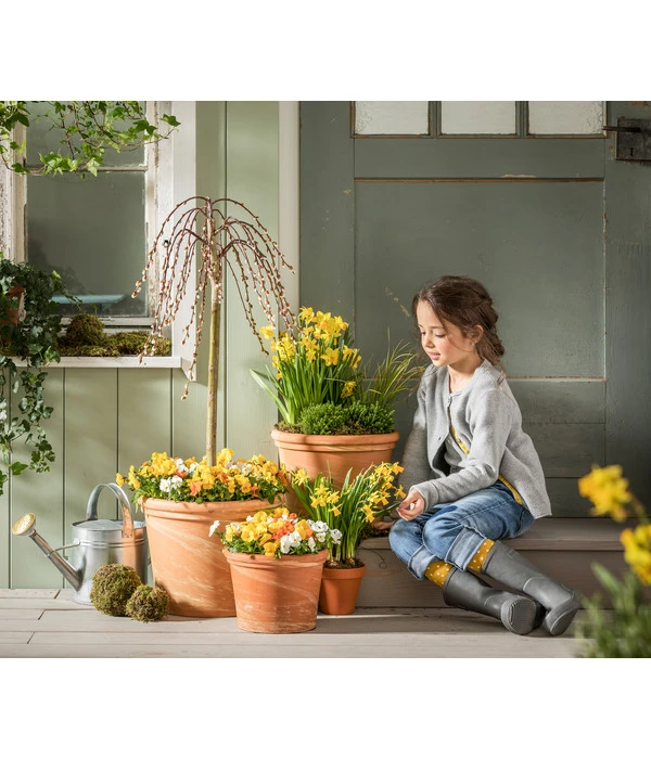 Viola cornuta schmücken Ihre Gartenbeete mit bezaubernden Blütenteppichen, sie sind aber auch ein reizvoller Frühlingsgruß in Kästen, Kübeln, Schalen und Ampeln. Sehr dekorativ wirkt das Hornveilchen-Trio aber auch zusammen mit anderen Frühlingsblumen wie zum Beispiel Ranunkeln, Narzissen und Veilchen, von denen jede Pflanze eine etwas andere Blüten- und Wuchsform zum Arrangement beisteuert. Und wenn der Frühling wetter- und temperaturmäßig noch auf sich warten lässt, gibt’s für Sie nur eins: Schauen Sie in die fröhlichen Blütengesichter Ihres Hornveilchen-Trios und Ihre Laune wird sich gleich verbessern!