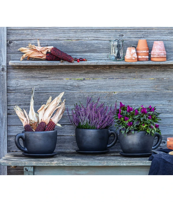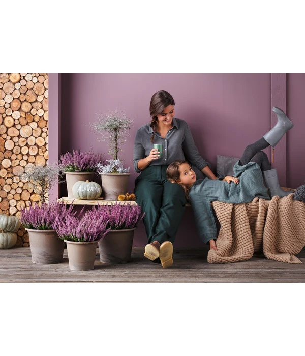 Hierzulande ist die knospenblühende Heide beliebt als kreativer und winterfester Grabschmuck. Die Calluna ‚Hilda®‘ bringt nicht nur Grab oder Beet zum Blühen, auch Floristen greifen gern auf sie zurück, um mit ihr einen dekorativen Landhaus-Schmuck zu kreieren. Heide eignet sich z. B. als Tischschmuck in schön verzierten Töpfen. Schneidet man die blühenden Zweige ab, kann man sie zu kleinen Kränzen winden und damit etwa Windlichter dekorieren. Seien Sie kreativ – unsere Calluna Gardengirls® sind zu allem bereit.