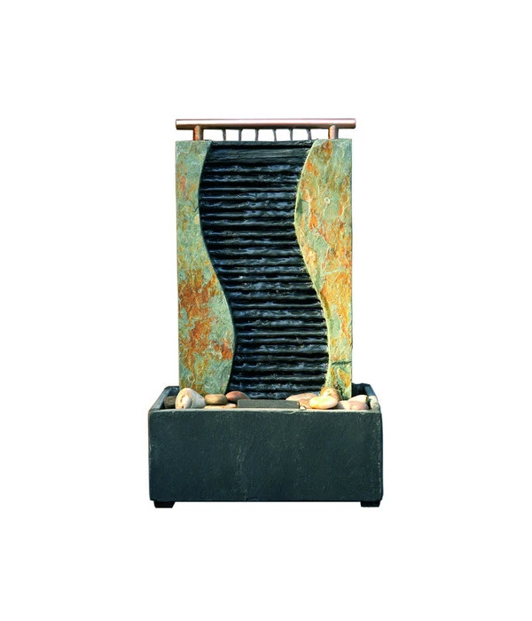 Im Feng Shui ist es ein absoluter Grundsatz: Das Chi in den Zimmern soll gut fließen, damit sich positive Energie im eigenen Zuhause breit machen kann. Dies wird besonders durch langsam fließendes Wasser begünstigt, das idealerweise einem naturbelassenen Fluss nachempfunden ist. Sie möchten sich dieses uralte Wissen des Feng Shui zunutze machen? Dann liegen Sie mit dem Echtsteinzimmerbrunnen aus Schiefer von Seliger goldrichtig. Der wunderschön gestaltete Brunnen trägt mit seiner edlen, zeitlosen Optik und dem plätschernden Geräusch des Wassers zu einer entspannten und wohligen Atmosphäre bei. Im Lieferumfang enthalten sind die Pumpe, die Halogenbeleuchtung, die Zuleitung und verschieden farbige Flusskieselsteine.