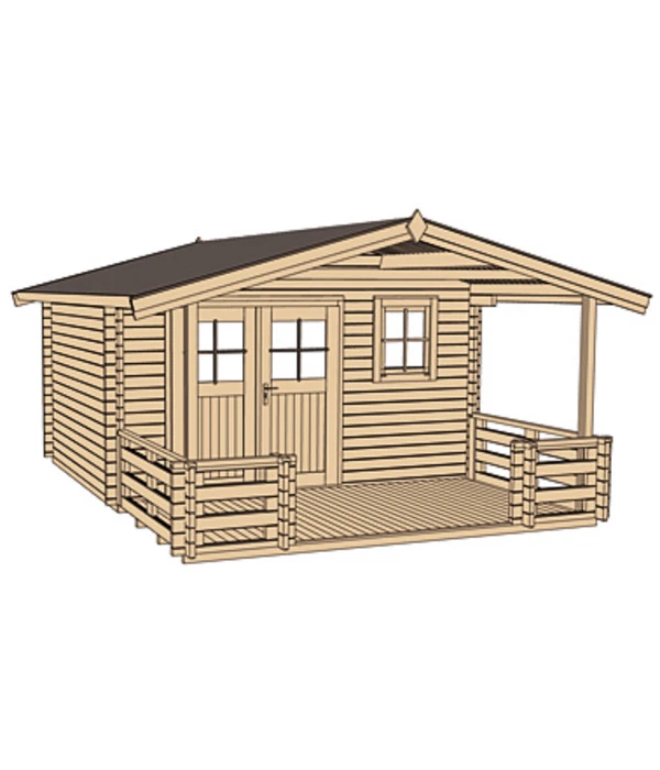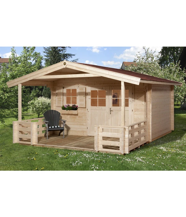 Gartenhaus 136 in stabiler Blockbohlenbauweise, 45 mm Wandstärke, mit 19 mm Massivholzdach und Massivholzboden