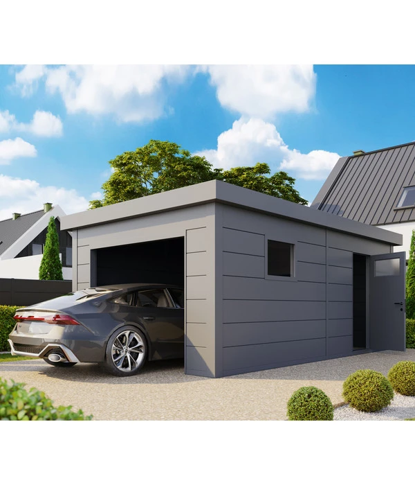 Die Wände sowie das Dach der Garage Eleganto 3654 von Wolff Finnhaus bestehen aus robustem, europäischem Qualitätsstahl und sind daher ausgesprochen witterungsbeständig sowie langlebig. Lüftungsgitter sorgen für eine dauerhafte gute Luftzufuhr ins Innere und senken somit die Rostgefahr. Das elektronische Tor mit LED-Licht lässt sich mit den beiden mitgelieferten Drückern bequem öffnen und schließen. Zudem verfügt die Garage Eleganto 3654 an der Seite über < b> ein Fenster und eine Tür. Lassen Sie sich diese Vorzüge nicht entgehen und bestellen Sie diese Garage von Wolff Finnhaus gleich online!