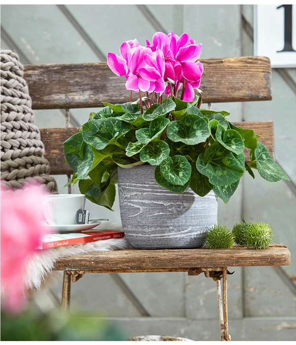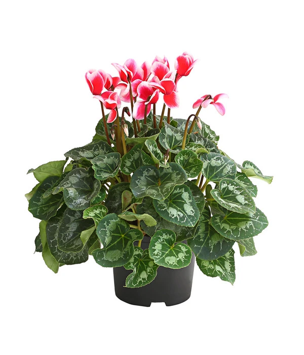 Alpenveilchen gehören zu den bekanntesten und beliebtesten Zimmerpflanzen. Hatten sie einige Jahre etwas unter dem Ruf zu leiden, altmodisch zu sein, so erfreuen sich jetzt sogar junge Leute an dem heiter-nostalgischem Flair, dass diese wirklich hübschen Zimmerpflanzen verbreiten. Aus einem dichten Busch herzförmiger Blätter, welche eine hübsche silber-weiße Zeichnung tragen, recken sich die schlanken Blütenstängel. Diese Blüten leuchten in allen Schattierungen von Weiß oder alle Rosa- und Rottöne bis hin zu zweifarbigen Varianten. Die Pflanzen in XXL-Größe sind im Dehner Premium-Sortiment und sind besonders große, kräftige Pflanzen, die sich ideal für große Gefäße eignen und gerne einen Solo-Auftrtitt im Blumenfenster hinlegen.